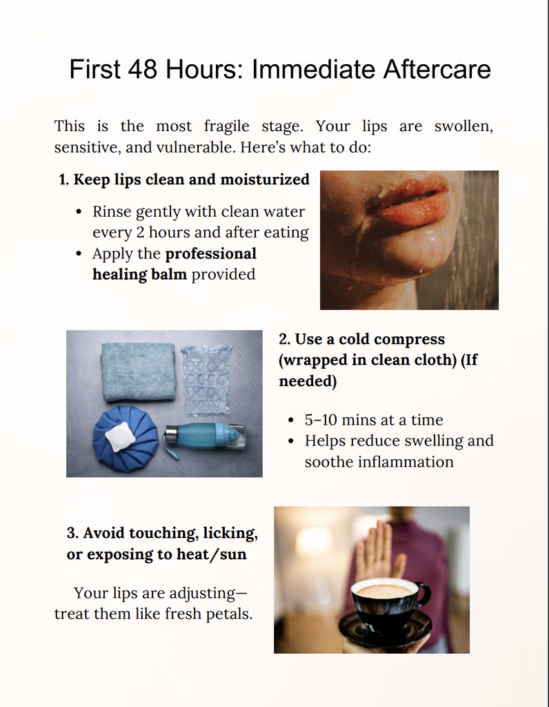 This stage is the most fragile—your lips are swollen, sensitive, and vulnerable right after the Dark Lip Neutralization procedure. The photo below outlines simple but essential steps: